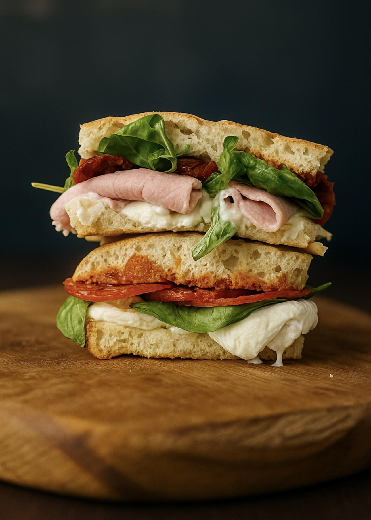 Stracciatella, Tomates séchées, Jambon aux herbes,